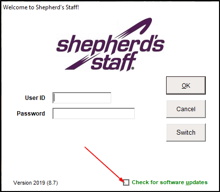 If you want to continue using this feature when running your backups, you will need to upgrade Shepherd’s Staff to version 8.8 or higher. You can do so by using the “Check for updates” link on the login screen and following the prompts, or you can call CTS Software Support at 1-800-346-6120 (Monday–Friday, 7:30 a.m.–5:00 p.m., CST) for help.