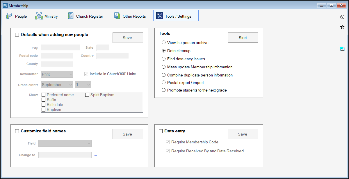 The Clean-up Utility is used to permanently remove person records from your database. After doing this, ALL the past membership, attendance, and contribution records for these people will be permanently deleted from the database.