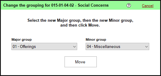 - The Move window will appear, and you'll be asked to select which Major group and Minor group you want to move this account to.